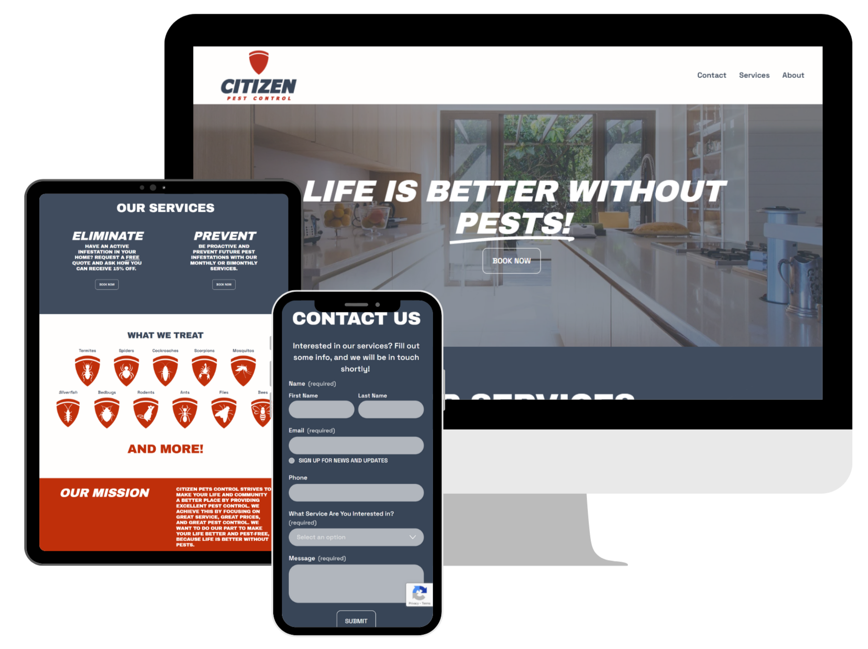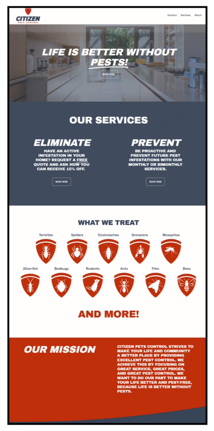 His main goal was to have a simple website that gave potential customers an option to inquire about prices. Since pricing and plans can be complicated in the pest control industry, he wanted to keep it basic and highlight his preventative and elimination services.